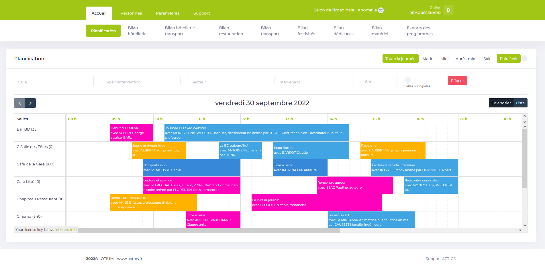 Conférences, tables rondes, animation, café littéraire, exposition, mini-conférences : toutes les natures d'animation sont accessibles et visibles sur le planning.